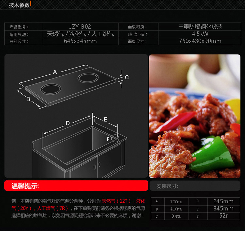 裕华四方炉具燃气灶具,家用煤气灶具嵌入式钢化玻璃,客信Q2G030R